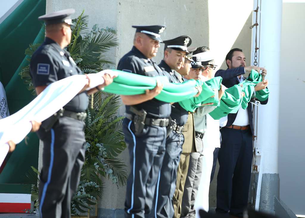 La ceremonia, presidida por Agúndez, se inició con el izamiento de la bandera monumental en la comunidad de Buena Vista, acompañado de los toques de ordenanza realizados por elementos de la Dirección General de Seguridad Pública, Policía Preventiva y Tránsito Municipal de Los Cabos.