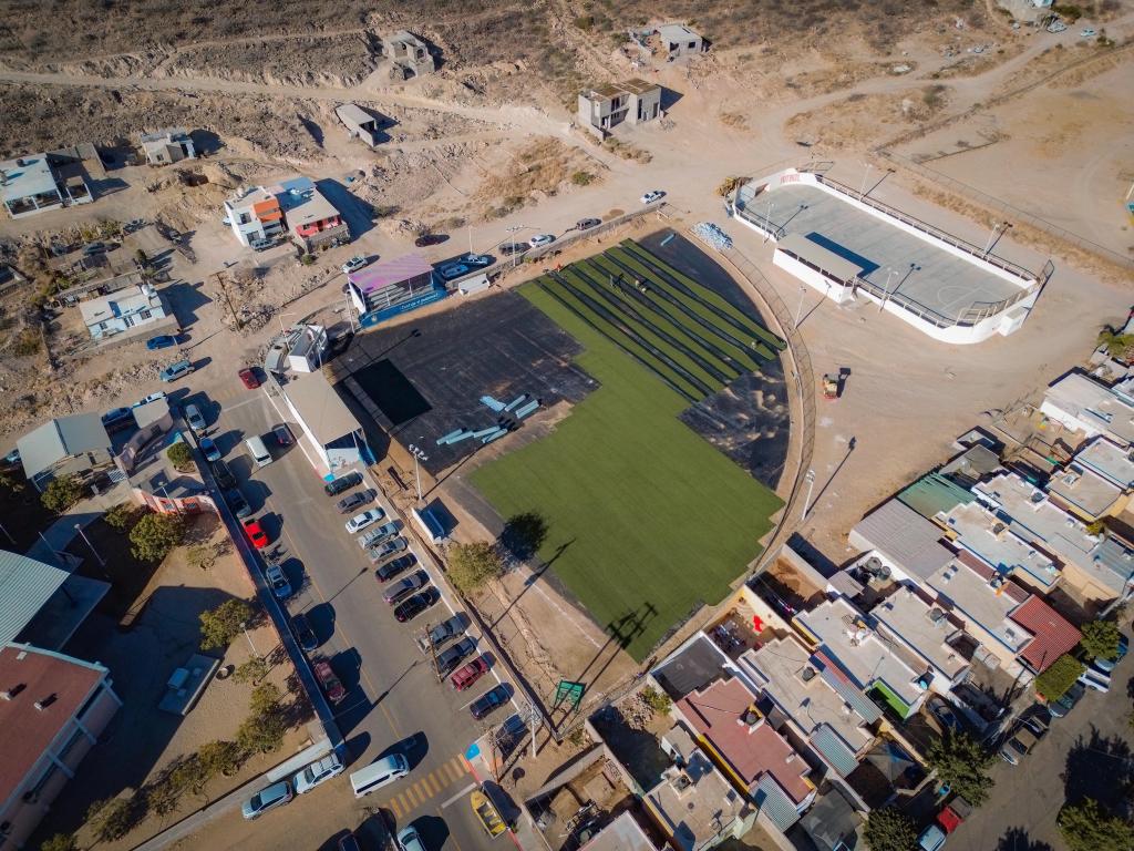 - Instalación de pasto sintético de 4 mm de espesor para mayor seguridad y comodidad de los jugadores.