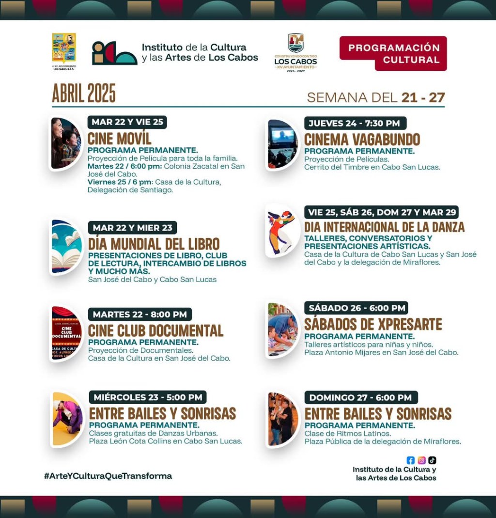 Finalmente, Covarrubias Martínez enfatizó que todas las actividades programadas son de acceso gratuito y forman parte de la iniciativa del XV Ayuntamiento de Los Cabos por descentralizar el acceso al arte y la cultura, buscando así promover una participación activa de la comunidad en los diversos espacios culturales del municipio.
