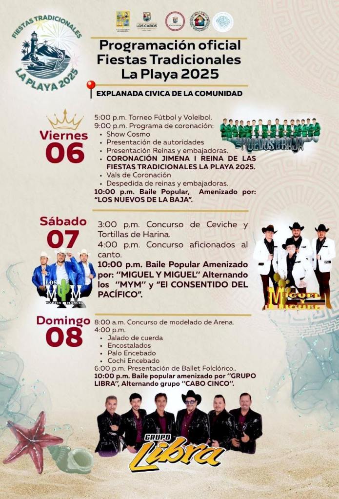 Los Cabos, Baja California Sur. El XV Ayuntamiento de Los Cabos, a través de la Dirección General de Desarrollo Social y la Dirección Municipal de Organización y Participación Ciudadana, extienden una cordial invitación a la población en general para asistir a las Fiestas Tradicionales “La Playa 2025”. Estos festejos, que prometen una serie de eventos y actividades cívicas, deportivas, artísticas y culturales, se desarrollarán del 06 al 08 de junio.