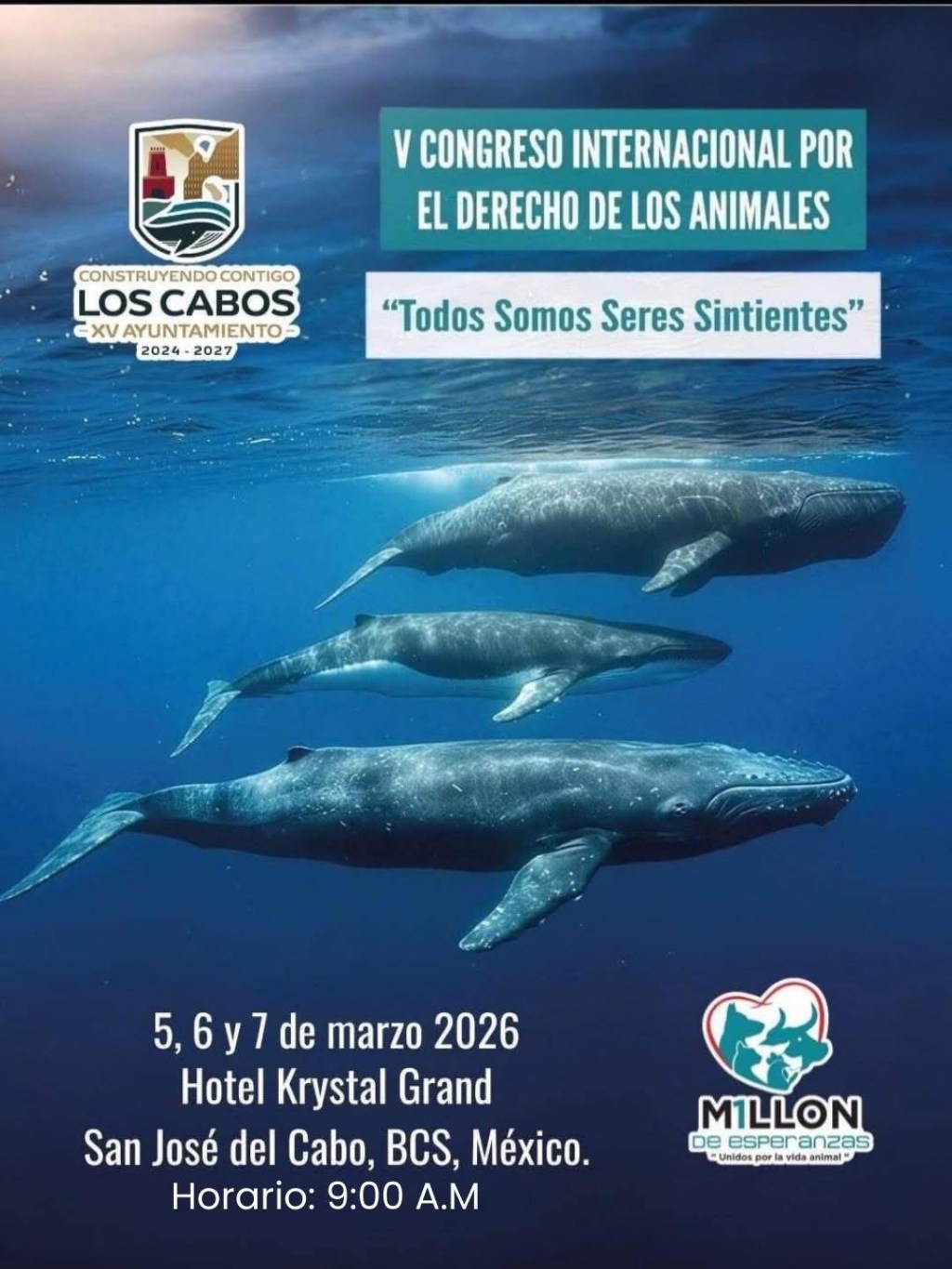 Del 5 al 7 de marzo, se desarrollará en San José del Cabo el V Congreso Internacional por el Derecho de los Animales, bajo el lema “Todos Somos Seres Sintientes”; las actividades se realizarán en el Hotel Krystal Grand, con la participación de destacados especialistas, académicos y defensores del bienestar animal, quienes trabajarán en una agenda global contemporánea en esta materia.