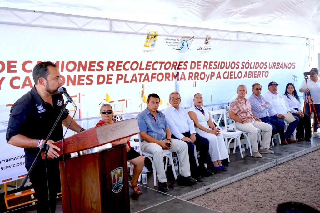 El acto se realizó en la explanada de la Delegación de Cabo San Lucas, donde se informó que esta acción forma parte del programa de inversión del Fideicomiso de Saneamiento Ambiental (FISAM), con el objetivo de mejorar la cobertura, frecuencia y eficiencia del servicio en las colonias.